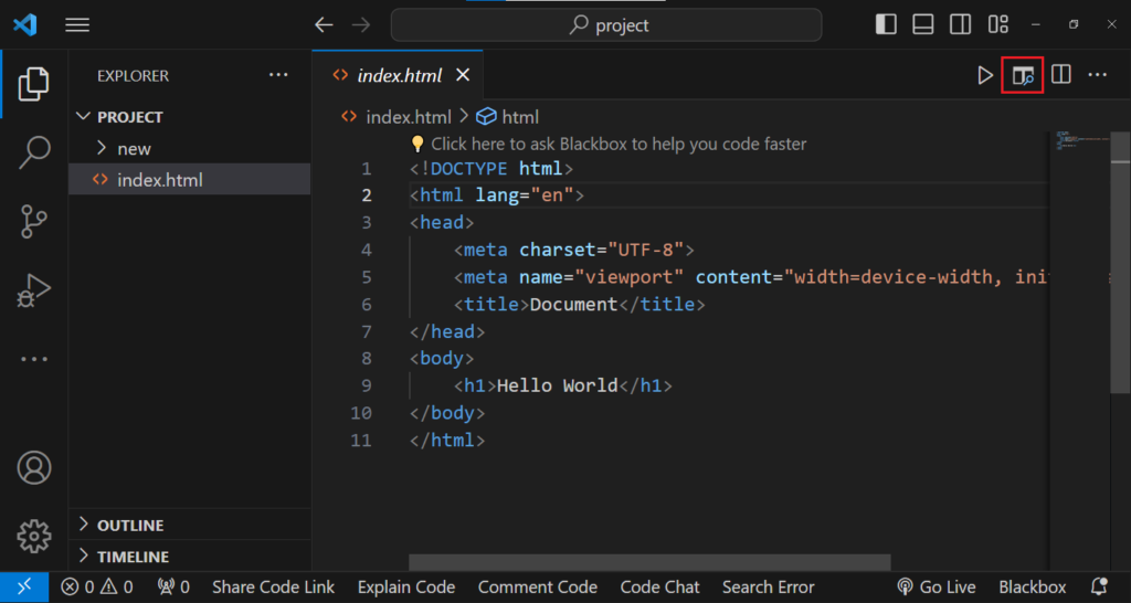 Once installed, you’ll find a button within VS Code that allows you to preview your HTML right within the editor.