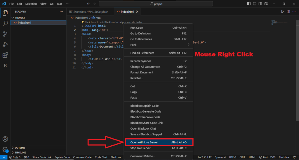 - Find the “Go Live” icon at the bottom-right corner of your VS Code window and click it.